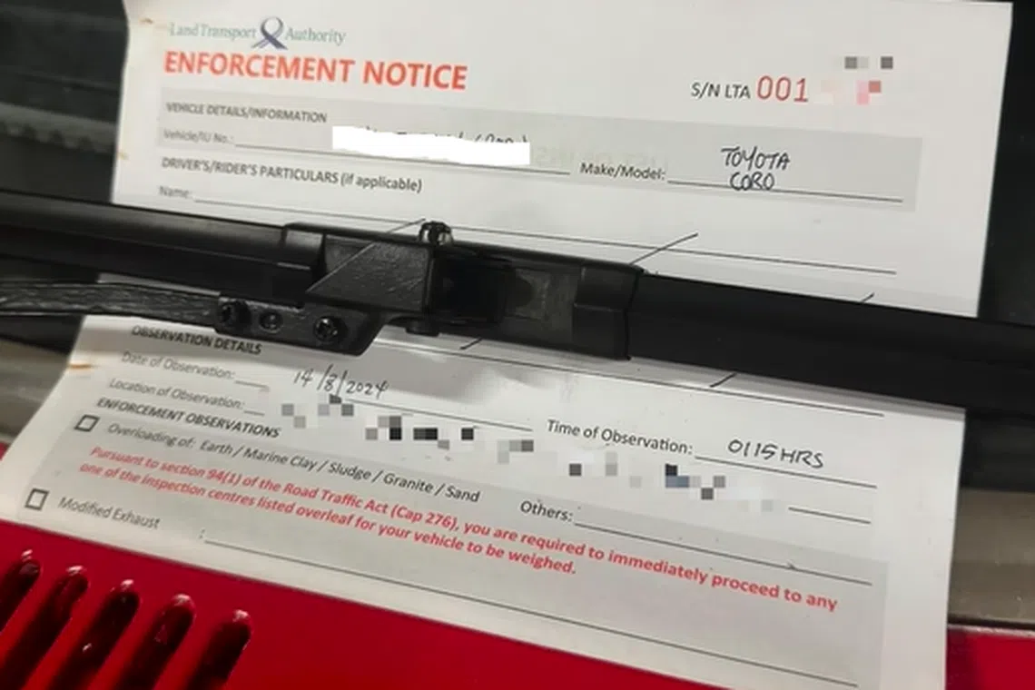 Mr Jack Yong discovered an LTA enforcement notice tucked under his car’s windscreen wiper on Aug 14.