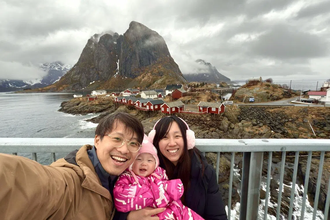 Ms Fiona Lee, her husband Shao Fei and their daughter Avril in Lofoten, Norway in April.