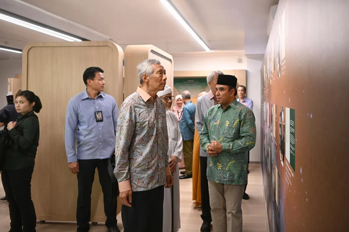 PM Lee Hsien Loong touring the new RRG Majulah Gallery accompanied by Ustaz Dr Mohamed Ali (in green) on May 3, 2023.