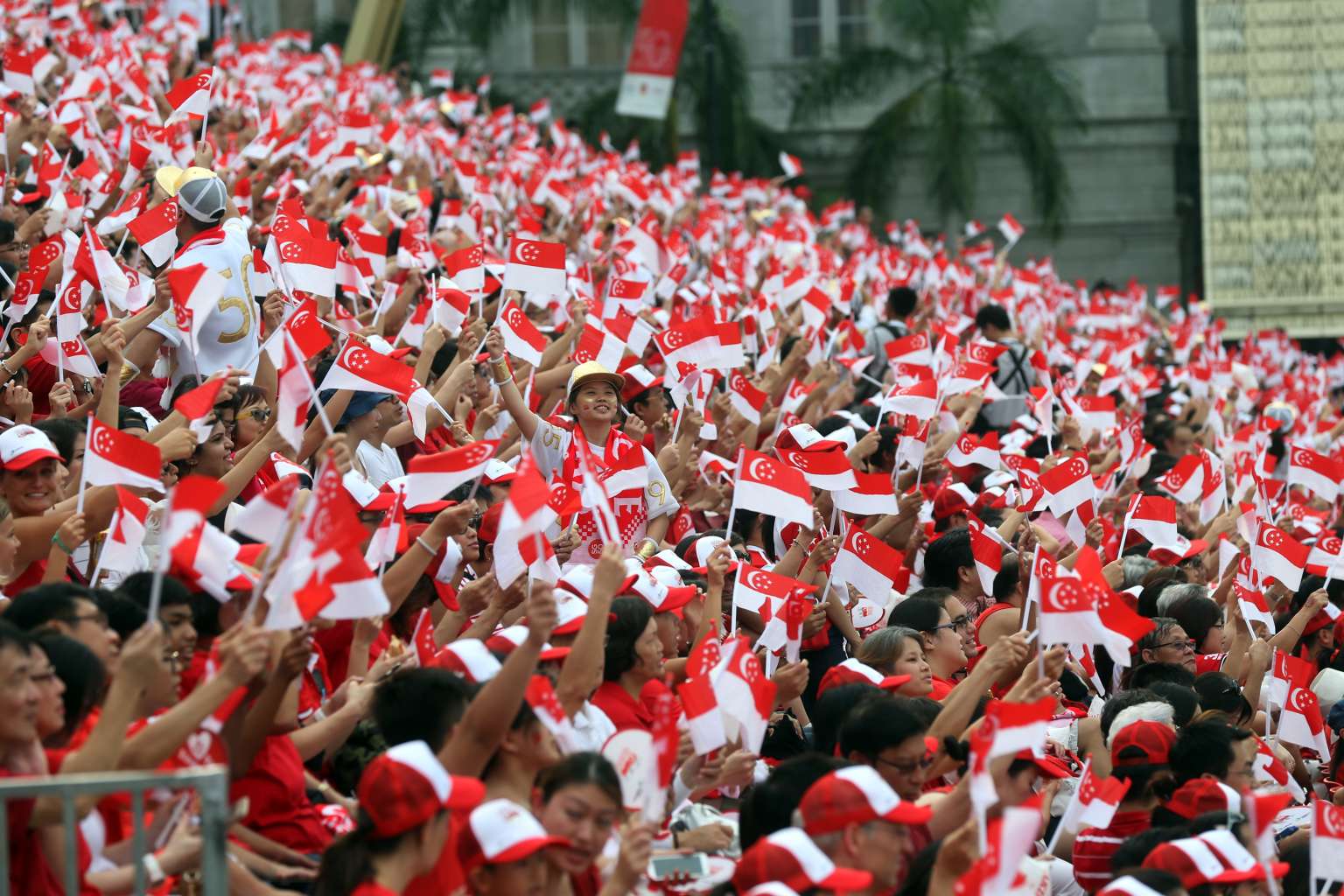 Spectators waving the mini Singapore flags during the Golden Jubilee National Day Parade (NDP) at the Padang on Aug 9, 2015.