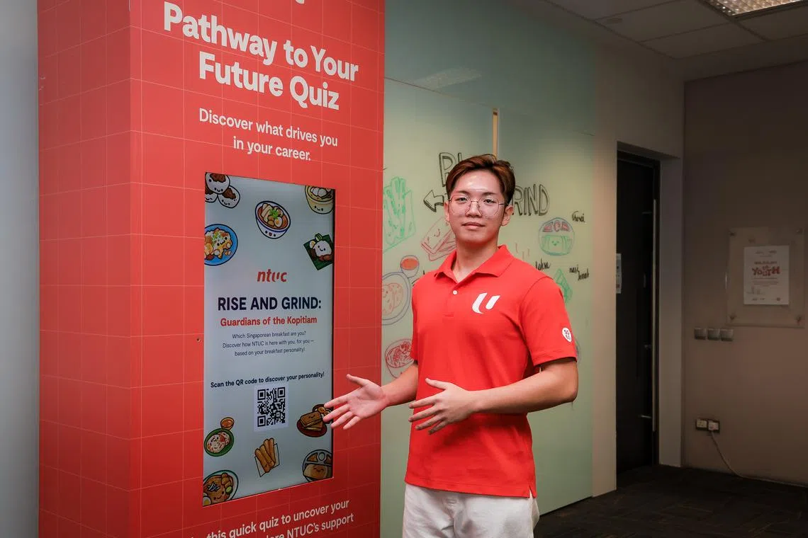 Mr Timothy Lim Zhi Heng, one of the student volunteers who helped create the career personality quiz Rise And Grind for an NTUC booth.