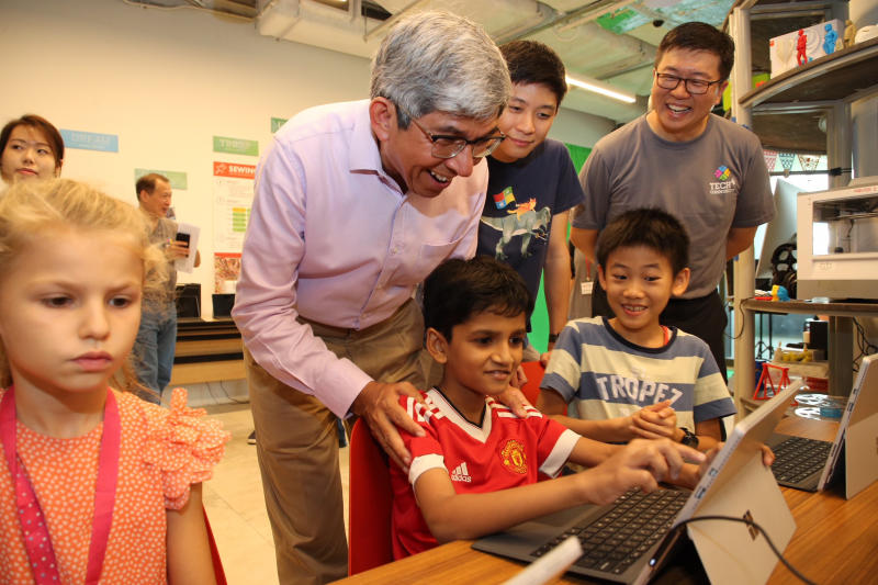 Dr Yaacob Ibrahim, Minister for Communications and Information, stopped by the Coding for Youth class at the Tech4Community Festival, on April 28, 2018.