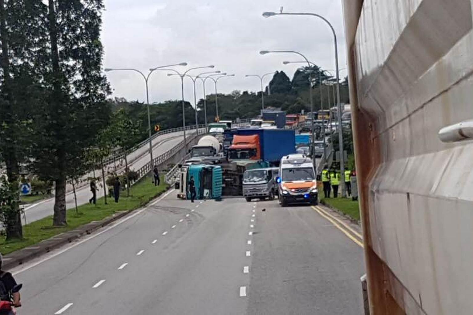 The Straits Times understands that the tipper truck driver had lost control of the vehicle and skidded.
