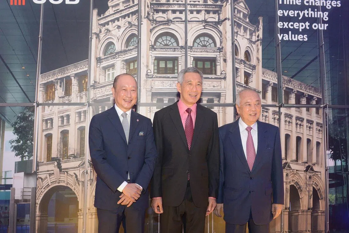 PM Lee Hsien Loong at UOB’s 80th anniversary gala dinner at Marina Bay Sands in 2015, flanked by the banking group’s chairman emeritus Wee Cho Yaw (right) and chief executive Wee Ee Cheong.