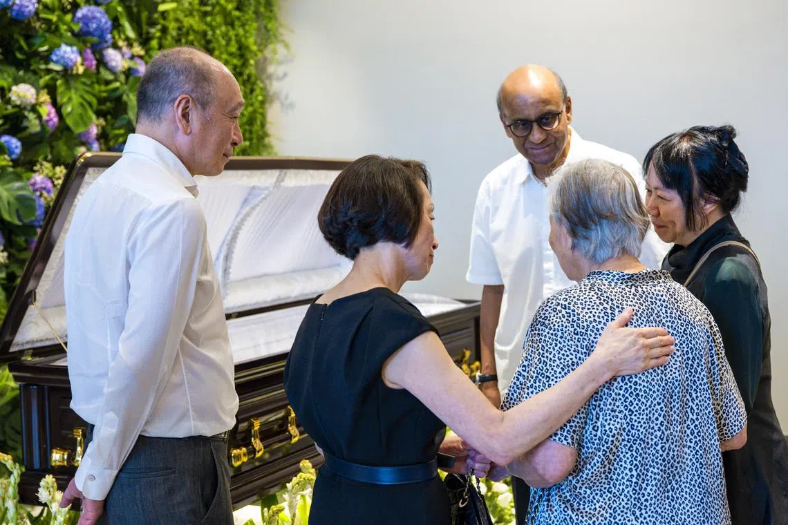 Dignitaries, including President Tharman Shanmugaratnam and his wife Jane Ittogi, and PM Lee, paid their respects to Mr Wee at his wake held at the Woodlands Memorial complex on Feb 4.