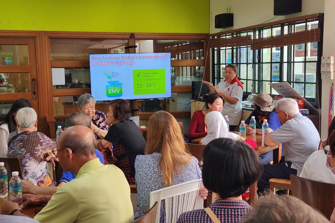 Seniors at a Tampines activity centre under the Kampung Senang Charity and Education Foundation at a heat stress talk conducted by the Singapore Red Cross on Jan 9.