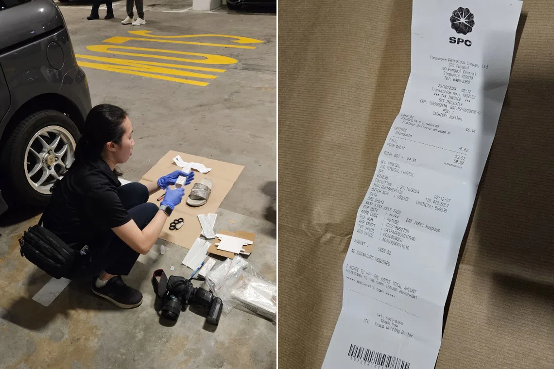 The items left behind in Mr Wong Wei Loong’s car included a receipt which showed that a transaction was made to top up the car’s petrol tank at 2.12am on Oct 29.