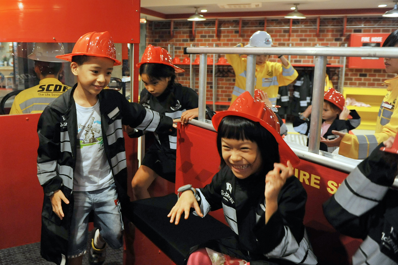 Children getting to role-play firefighters at Kidzania Singapore, which opened at Sentosa on April 12 this year.