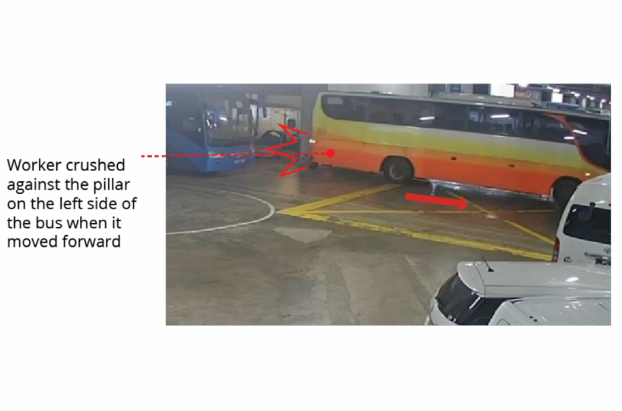 After reversing, the driver of the bus moved the vehicle forward to reposition it, but this led to the worker being crushed, said the WSH Council.