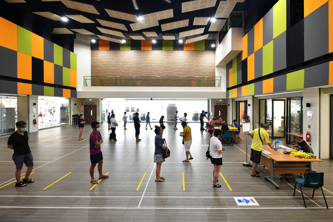 People queueing to collect TraceTogether tokens at Teck Ghee Community Club on Oct 24, 2020.