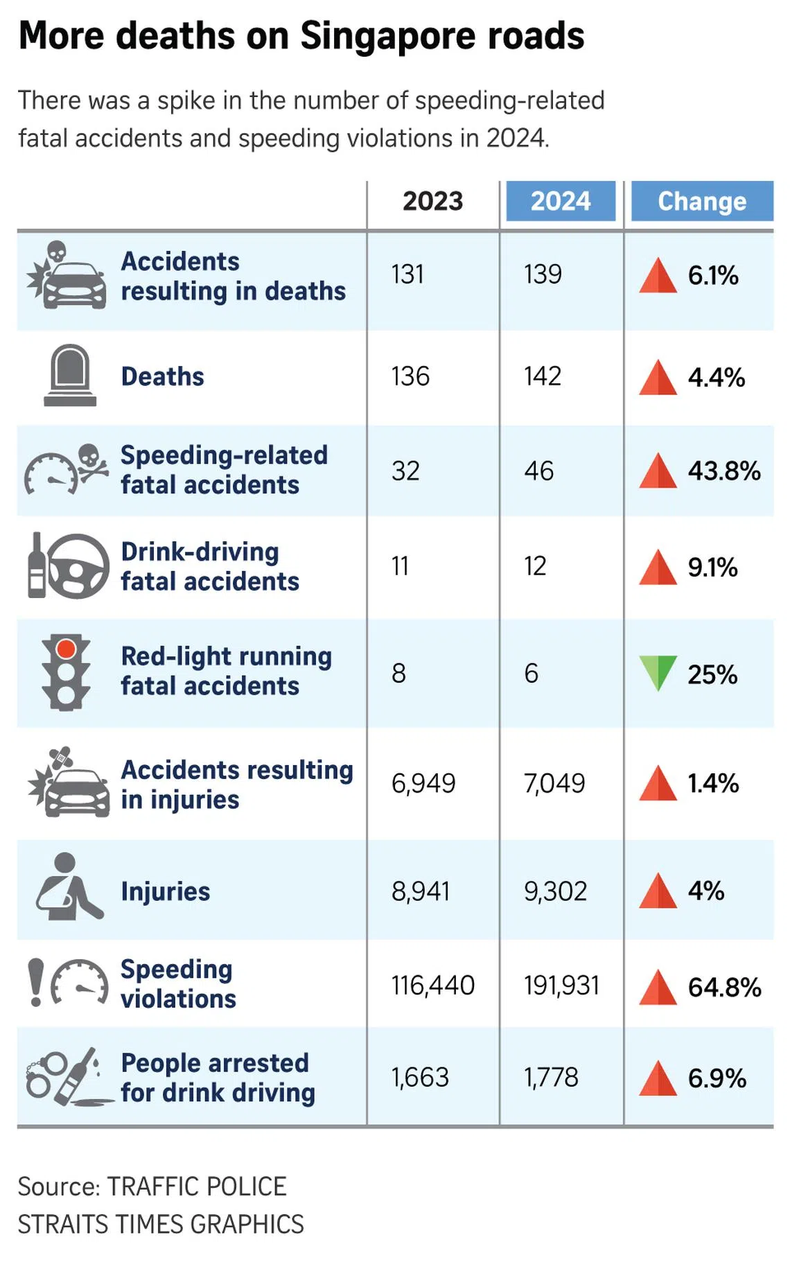 The spike in fatalities was matched by a sharp rise in motorists caught speeding, figures the Traffic Police (TP) released on Feb 21 showed.