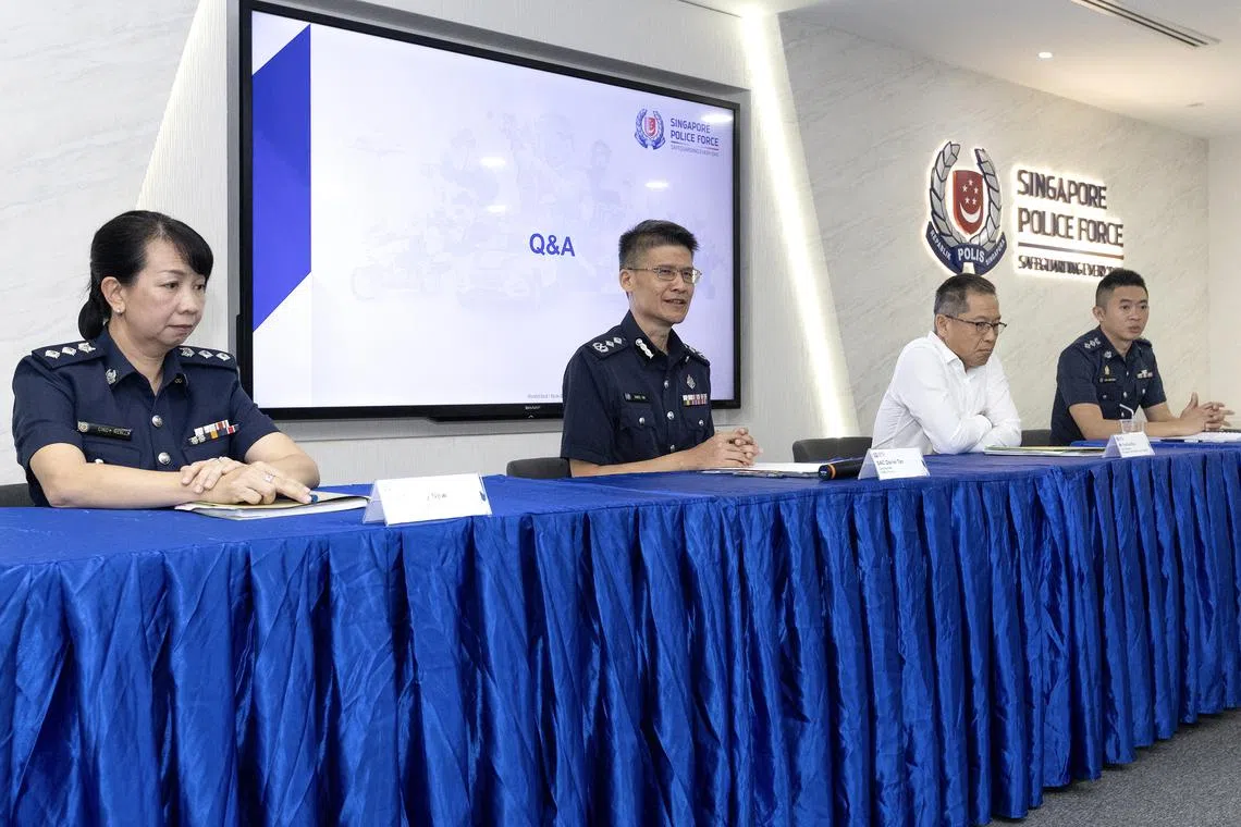 Traffic Police commander Daniel Tan (second from left) speaking to the media at a briefing on the annual road traffic situation for 2024 on Feb 21.