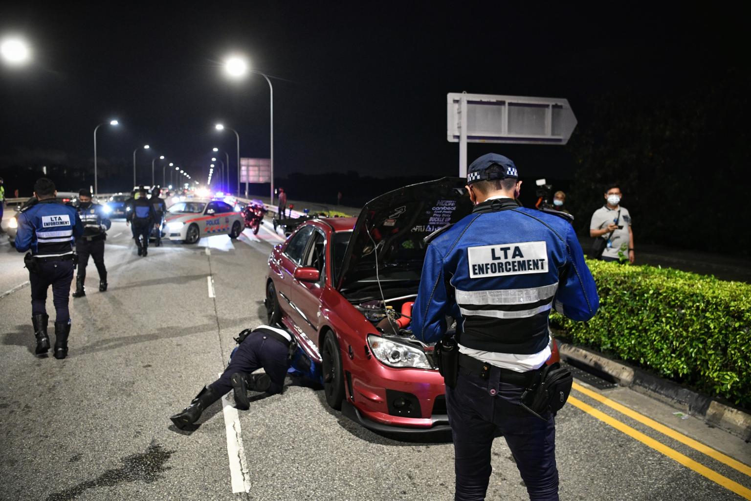 On Saturday, ST observed LTA officers stopping more than 30 vehicles along Yishun Dam for inspections between 1.30am and 2.30am.
