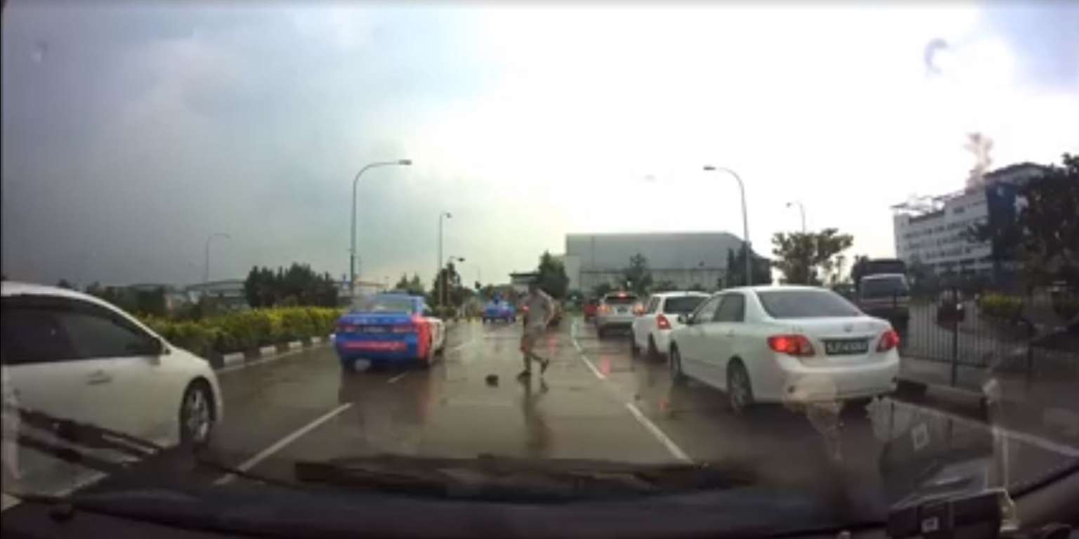 Cars had to change lanes to avoid a tortoise that was crawling ponderously across a three-lane road, holding up traffic, a video on road safety community page Beh Chia Lor showed.