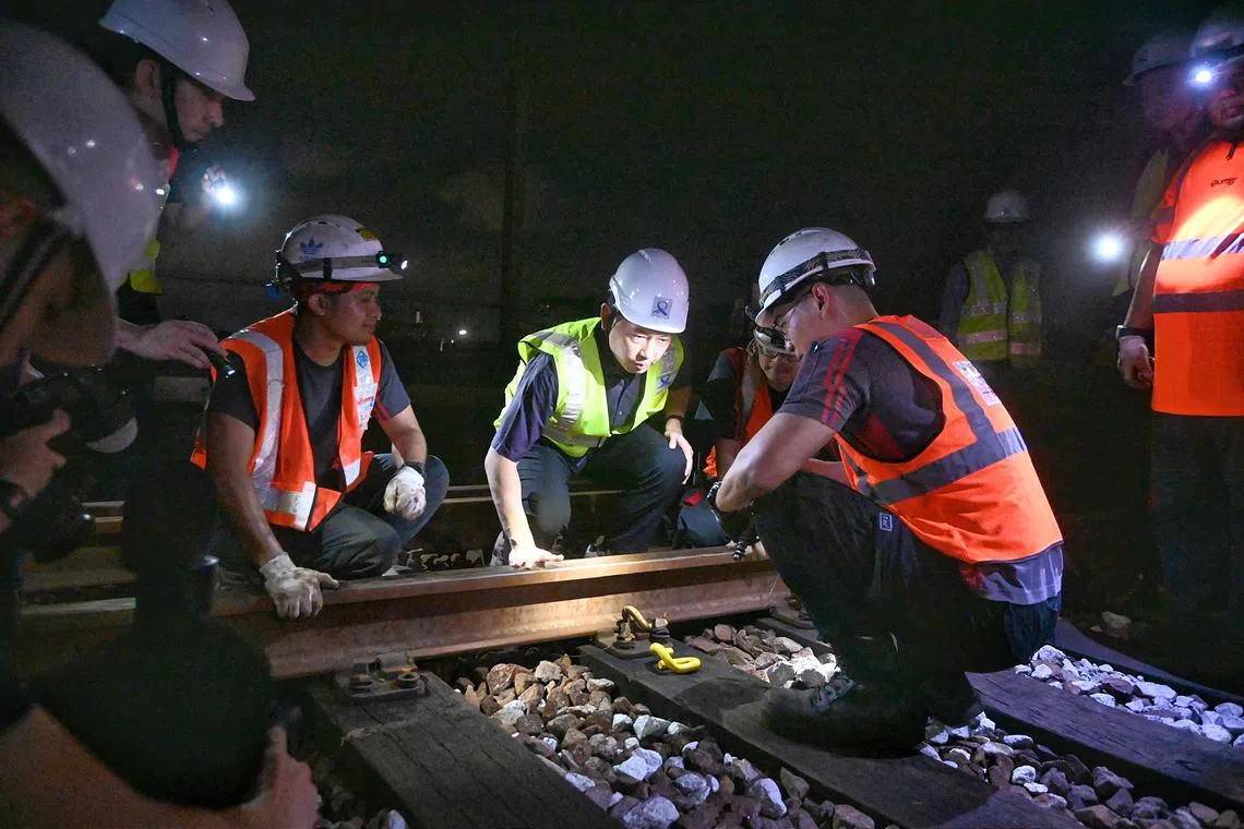 Transport Minister Chee Hong Tat (centre) visiting the tracks leading to Ulu Pandan Depot late on Sept 26.