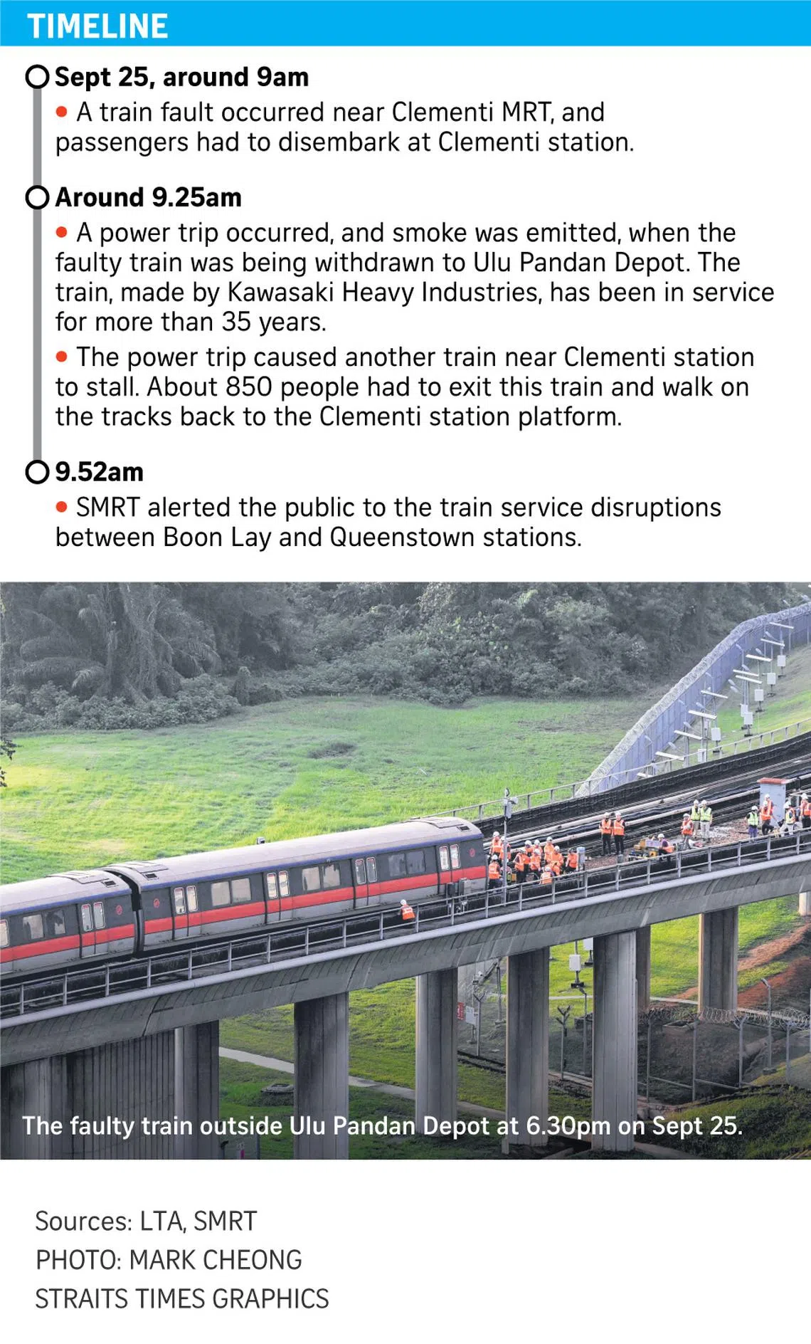 On Sept 25, a faulty train that was withdrawn from service and on its way back to a depot had caused extensive damage to tracks and trackside equipment