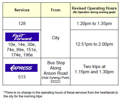 These bus services will operate normally for their morning trips from the heartlands.