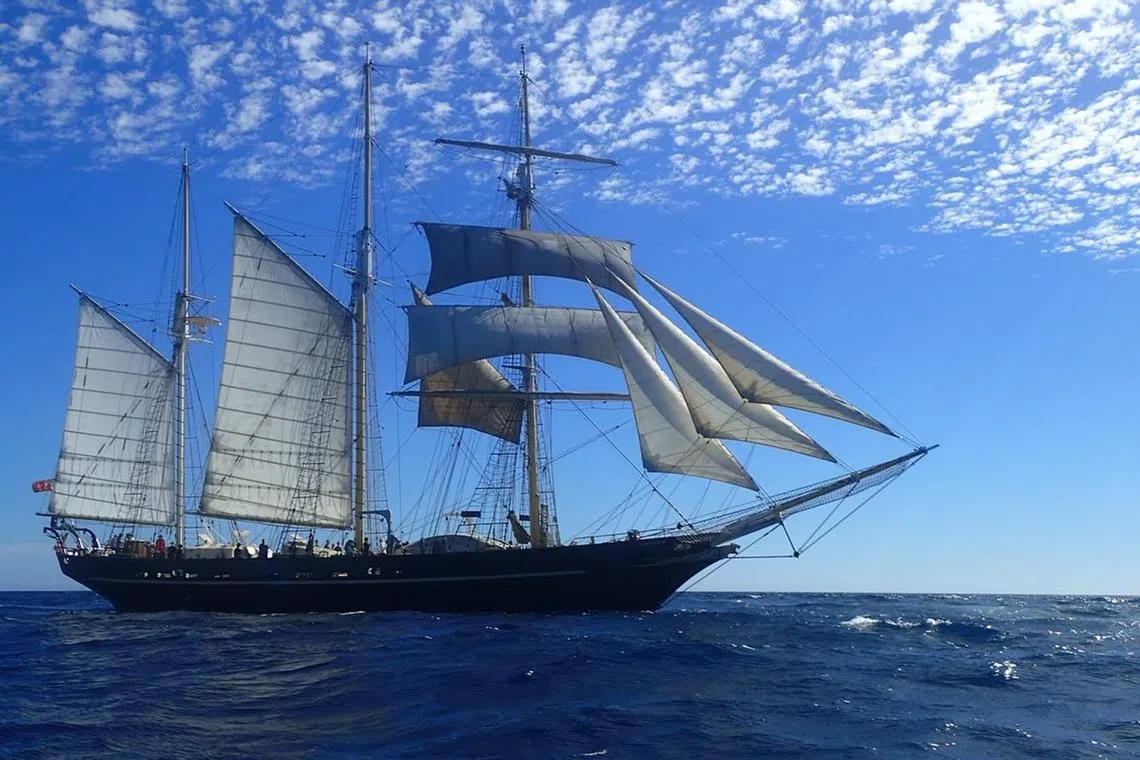 The STS Leeuwin II is operated by youth development charity Leeuwin Ocean Adventure Foundation, and is Australia’s largest sail-training tall ship, according to the foundation’s website. It is around 55m long and 33m tall.