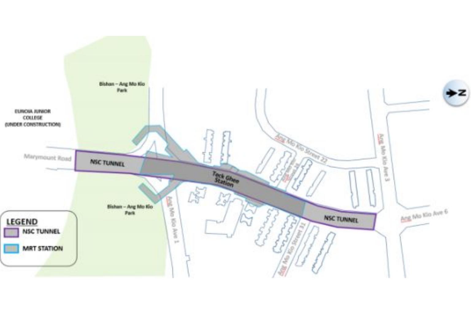 As part of the contract, Shanghai Tunnel Engineering Co (Singapore) will construct a road tunnel, an MRT station box - an underground structure that lays the foundation for a future station - and commuter facilities such as pedestrian overhead bridges between Sin Ming Avenue and Ang Mo Kio Avenue 3.