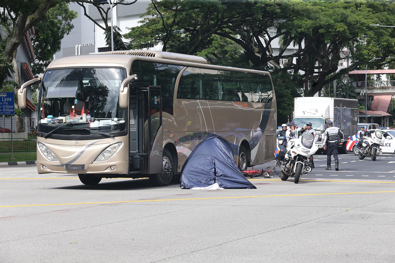 ST understands that the cyclist was dragged underneath the bus for several metres. It is not known how the bicycle was caught underneath the bus.