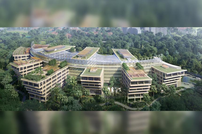 There will be 10 building blocks within the Surbana Jurong Campus, with the company trialling the use of solar panels to produce renewable energy to support its power needs.