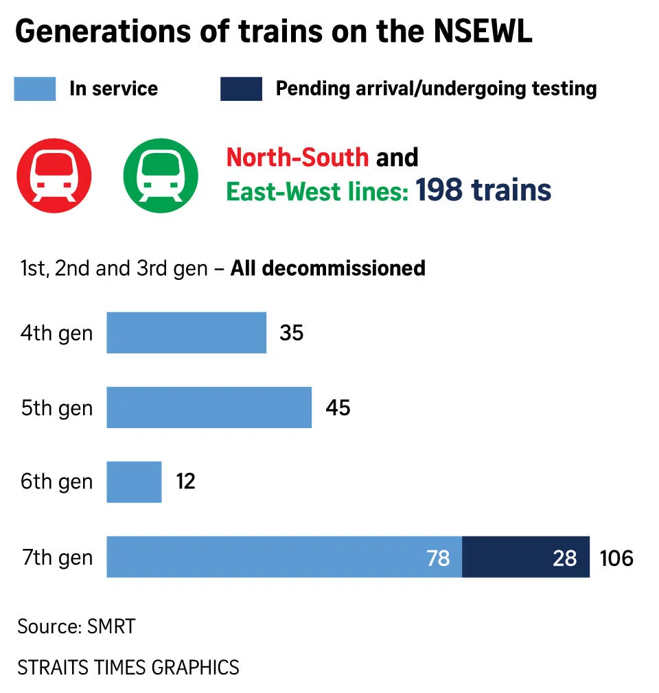 The rest of the fleet is made up of the newest seventh-generation trains, 78 of which are currently in service, with another 28 pending arrival or undergoing testing.