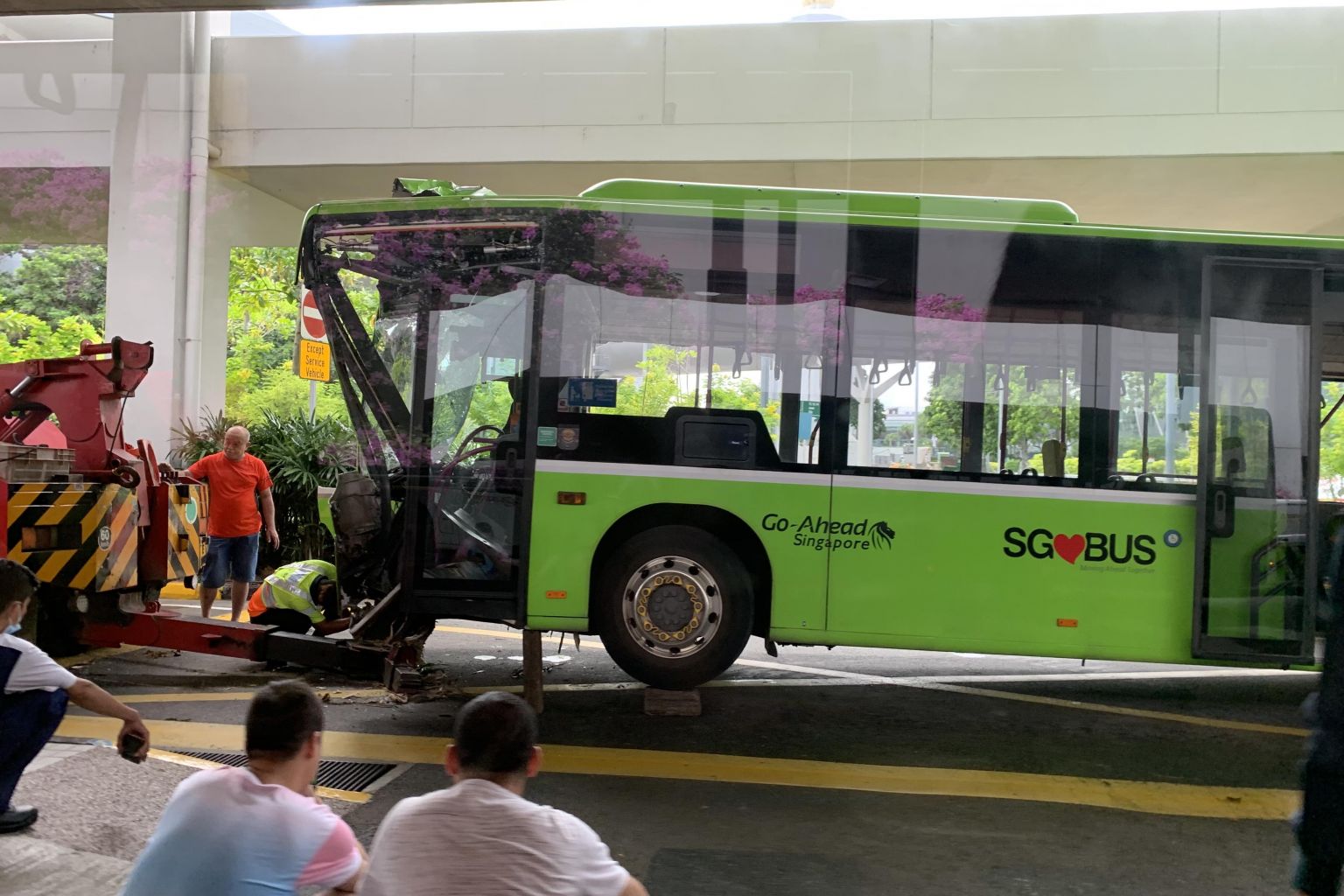 It said that the bus, which is operated by Go-Ahead Singapore, was found crushed against a concrete pillar.