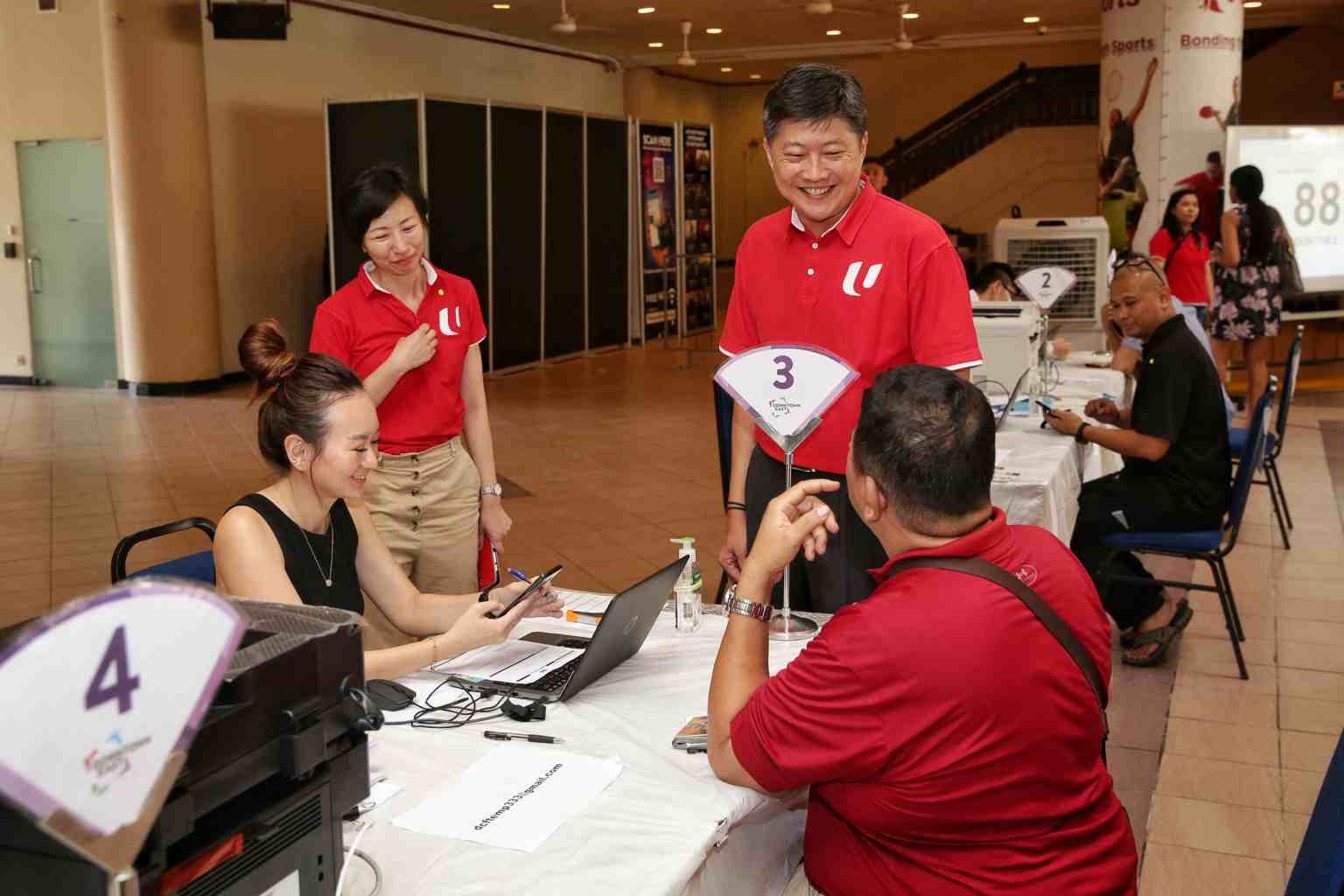 NTUC Secretary-General Ng Chee Meng at the pop-up care centre for private-hire and taxi drivers.