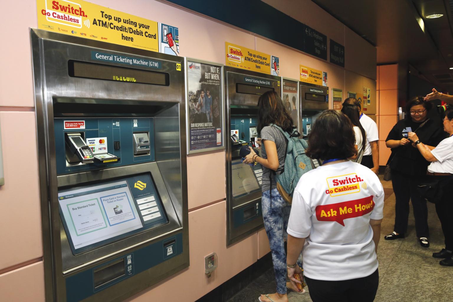 By 2020, all ticketing machines at train stations will only accept top-ups via electronic methods, such as Nets or debit and credit cards.