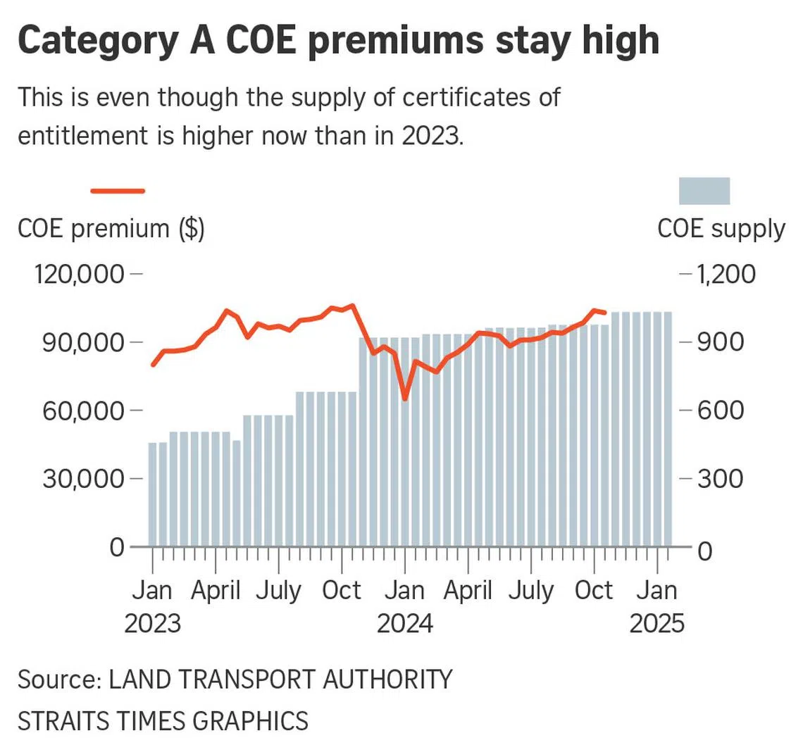 The rising Category A COE premium means mass-market cars are becoming more expensive, and buyers of such models may find them increasingly unaffordable due to the higher price tag.