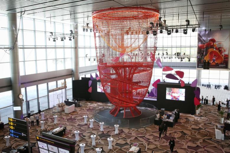 It features climbing nets and a pole for people to slide down at 2m intervals, Changi Airport Group said on Friday (Aug 3) when it unveiled the attraction at the official opening of T4, which started operations on Oct 31.