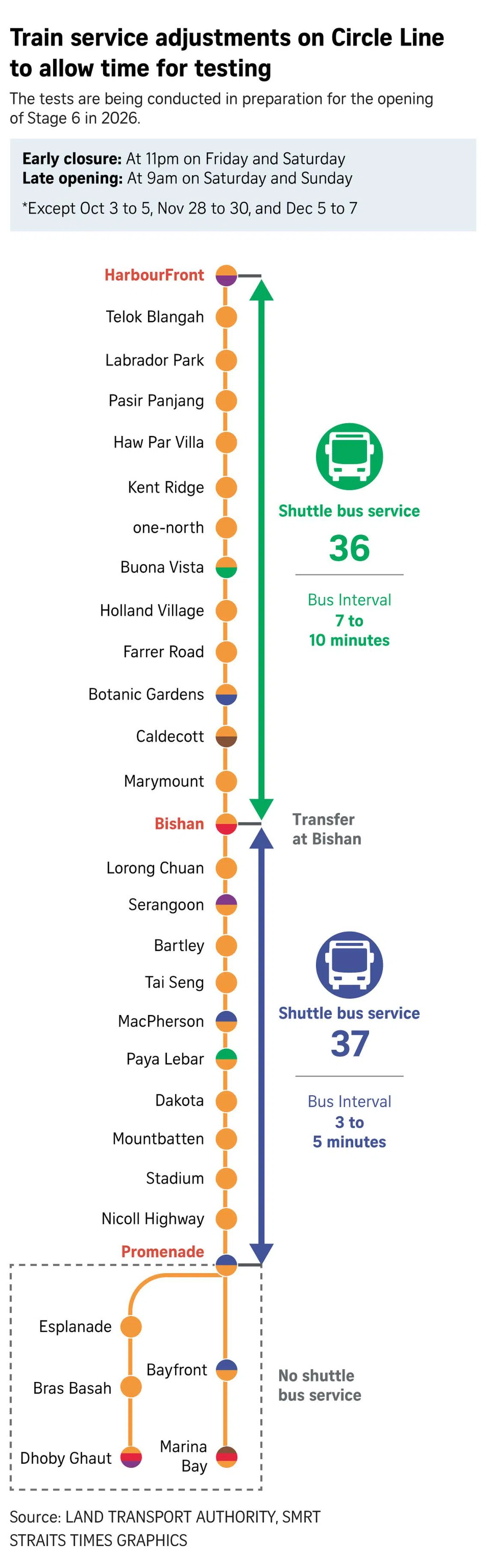 - Circle Line (CCL) will have early closures and late openings for system integration testing until December 2025.