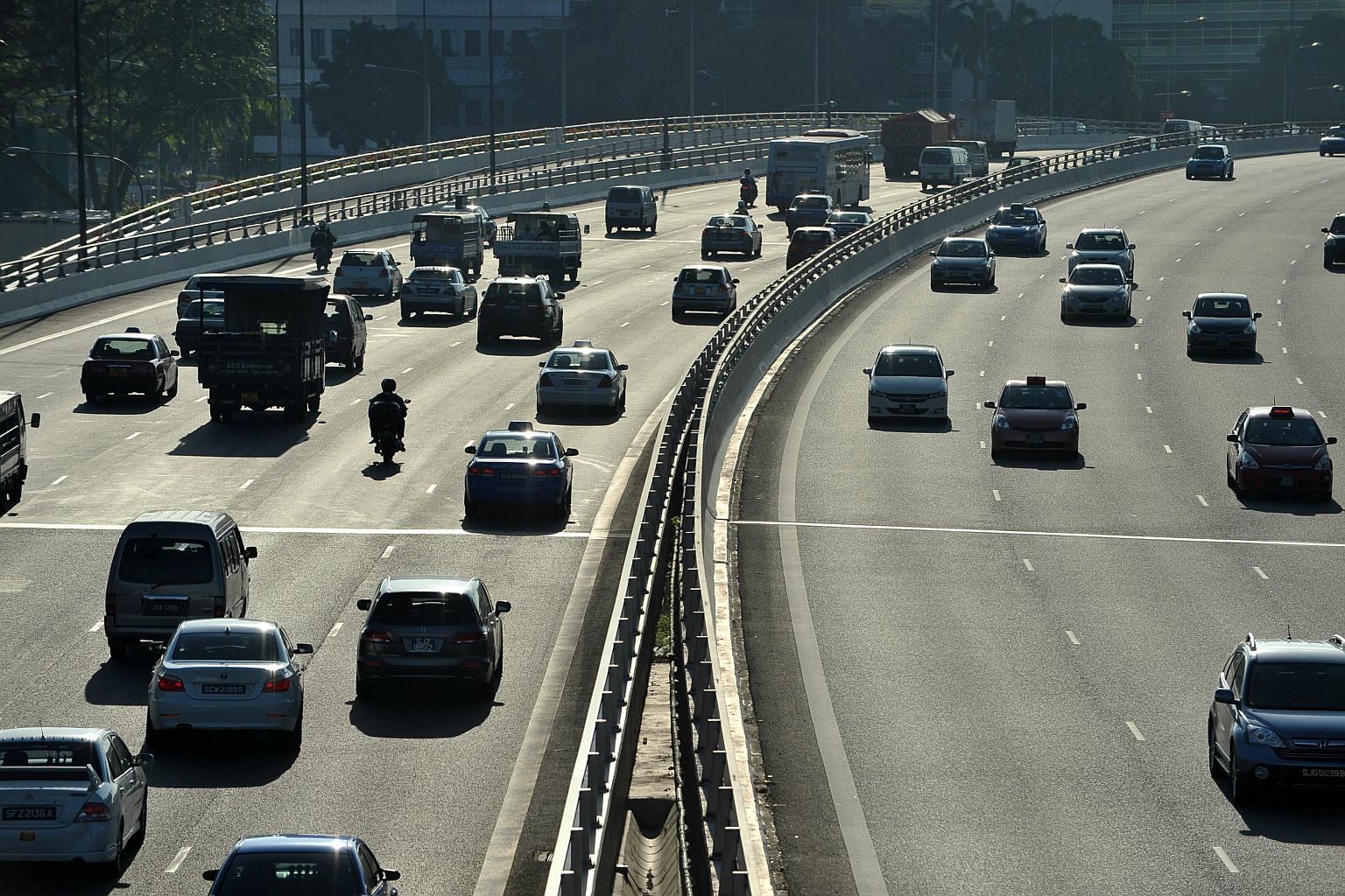 Morning rush-hour traffic on the Pan-Island Expressway (PIE).