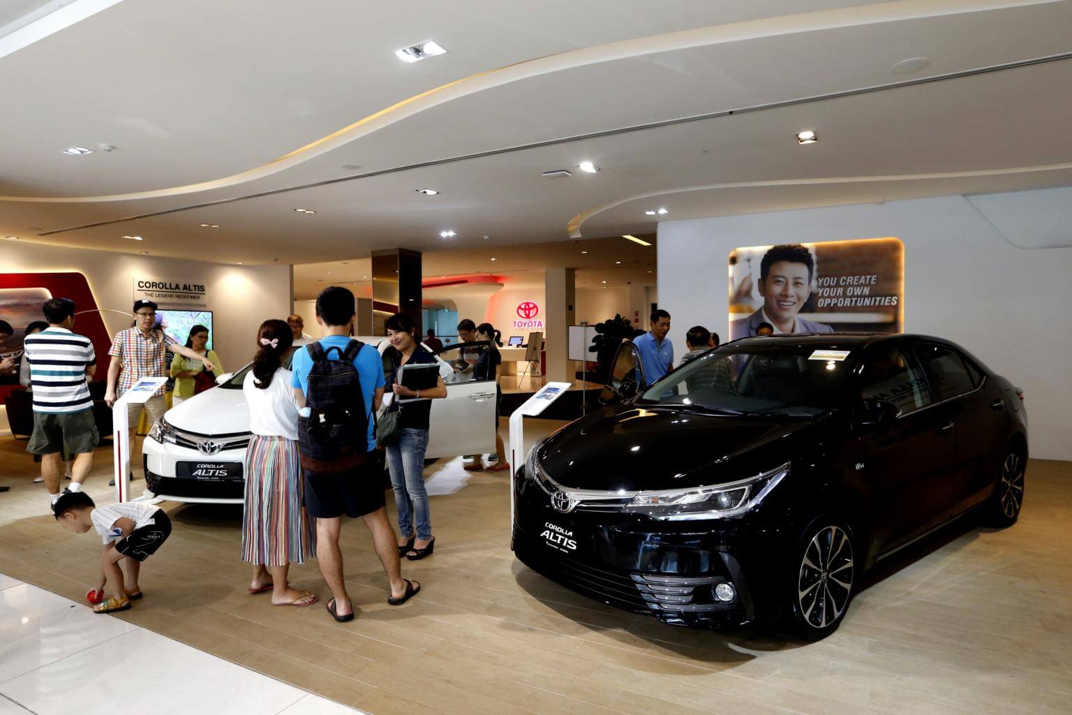 File photo showing customers at Borneo Motors’ Toyota showroom. The COE price for cars above 1,600cc or 130bhp has dropped by 8.6 per cent to $31,000.