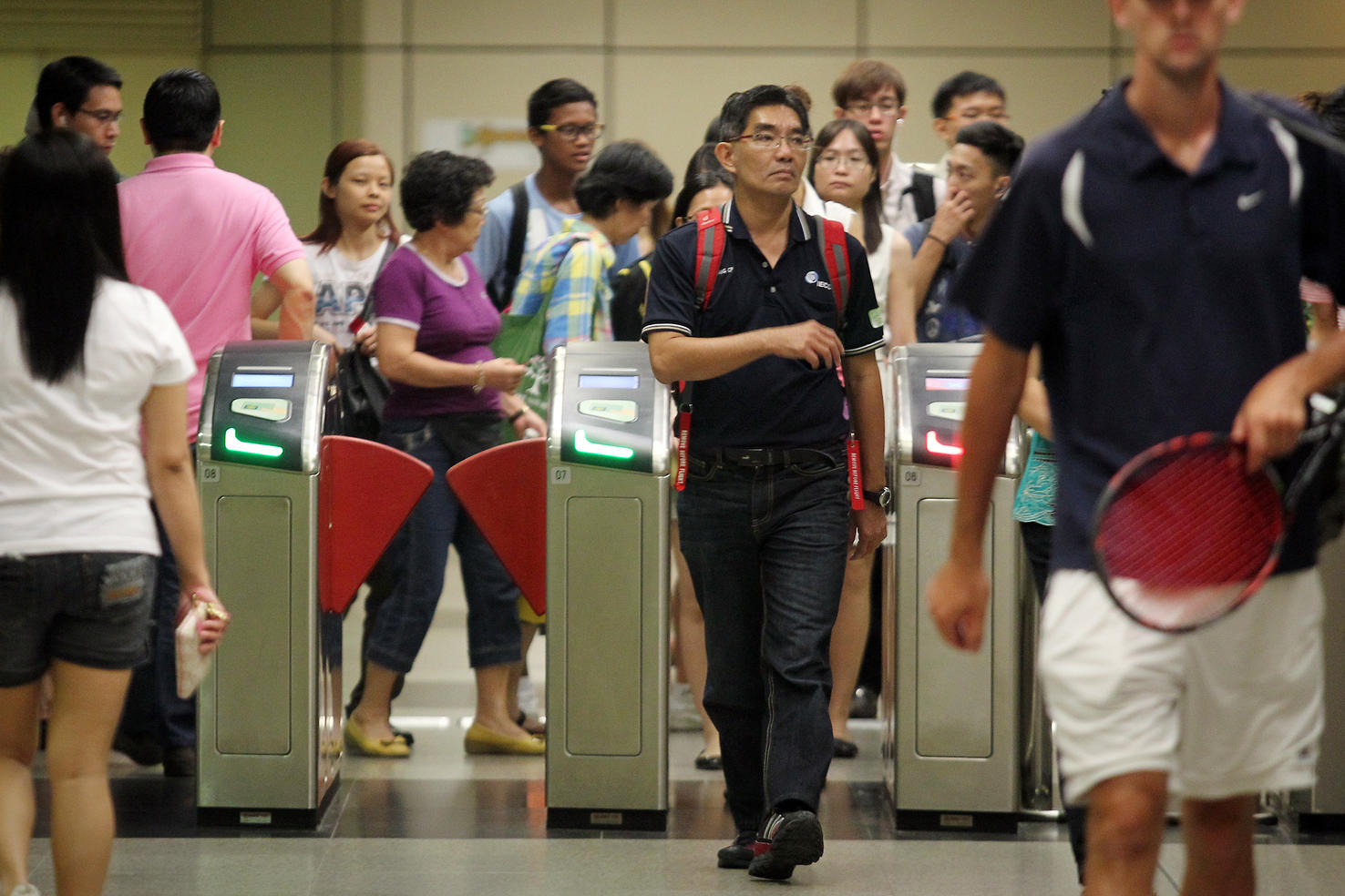 Commuters passing through the gantries at Toa Payoh MRT station in March 2013.