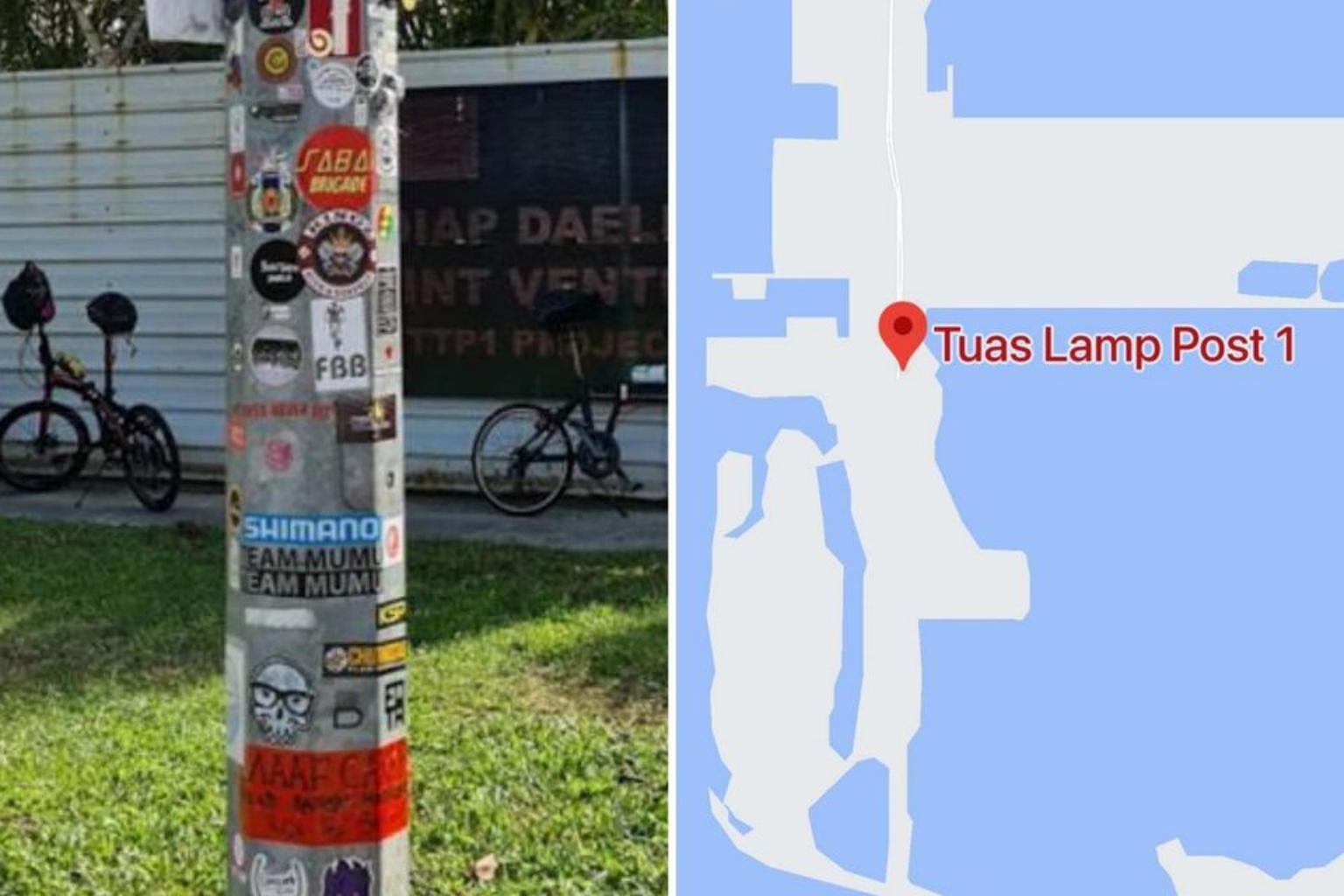 Product design manager Woon Taiwoon, 47, who co-founded the Love Cycling SG interest group, said he started the practice of pasting a sticker on Tuas Lamp Post 1 in 2014 after a cycling trip.