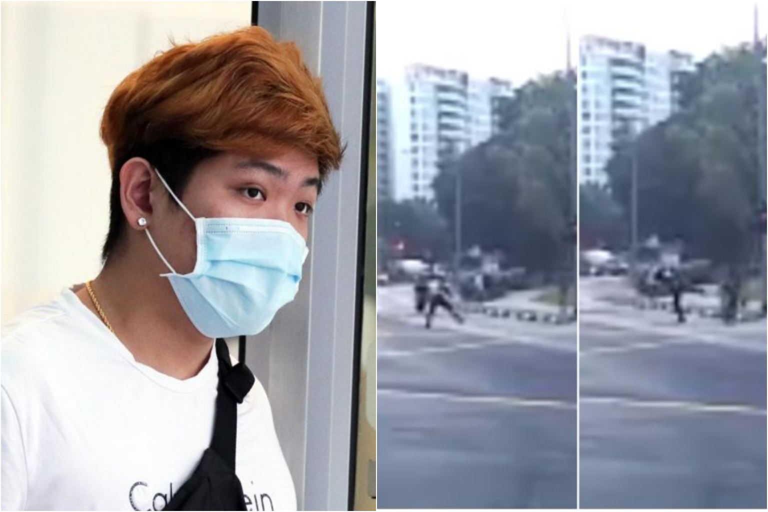 In a video clip posted on SG Road Vigilante, a Facebook community page, a uniformed officer - identified in a court statement to be Mr Kishok - is spotted running across the dual-carriageway as the rider approaches the junction at significant speed.