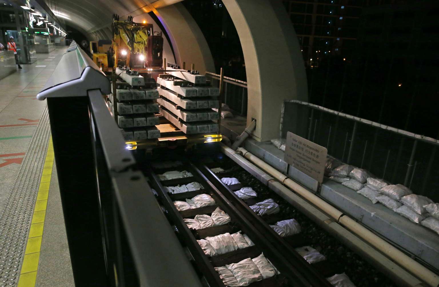 The media was shown a staging area in Kallang during the early hours of Friday morning, where four RRVs are deployed and concrete sleepers are stored.