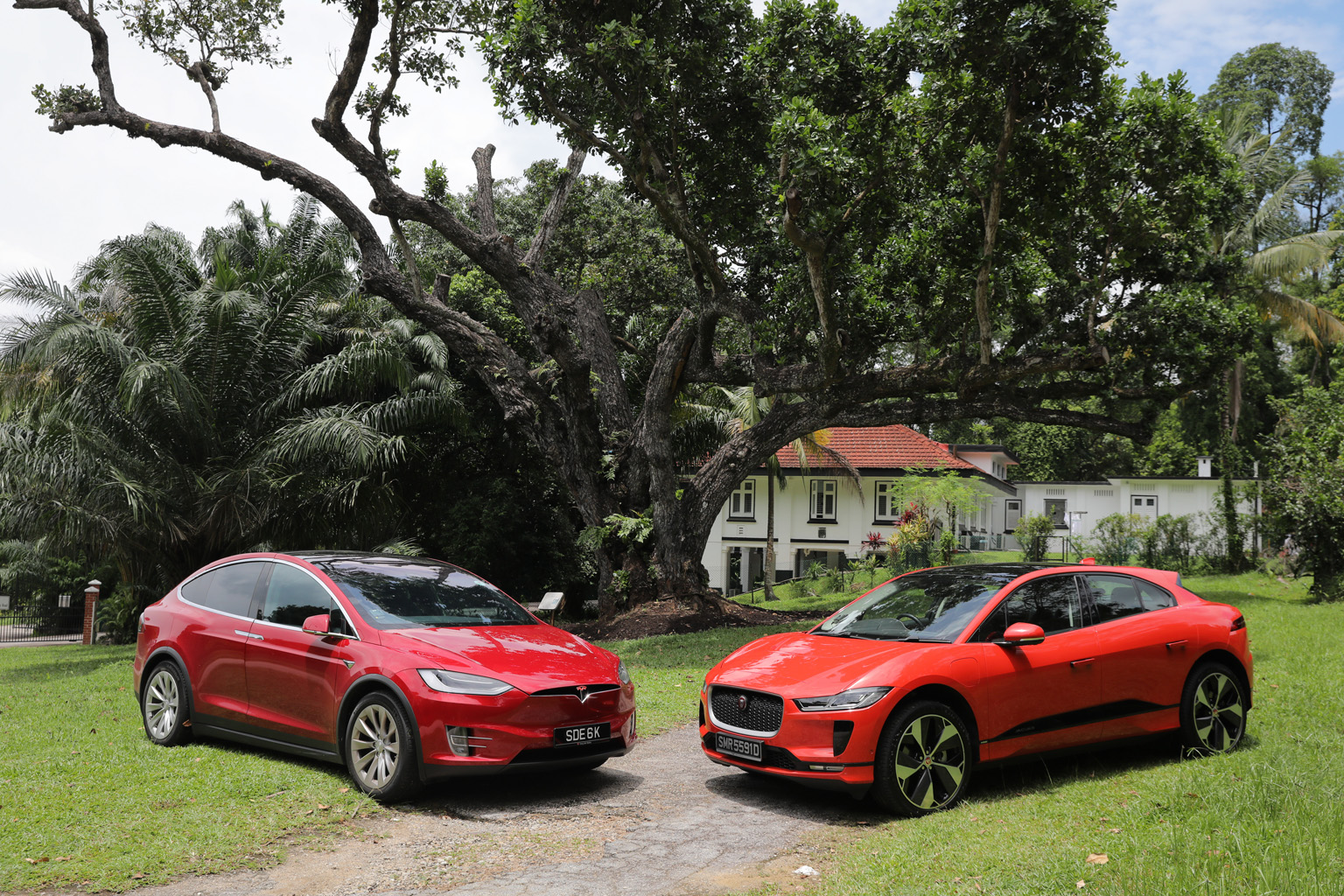 The Tesla Model X (left) and Jaguar I-Pace (right). The Electric Vehicle Early Adoption Incentive and the enhanced Vehicular Emissions Scheme took effect on Jan 1 and together offer buyers up to $45,000 in tax breaks.