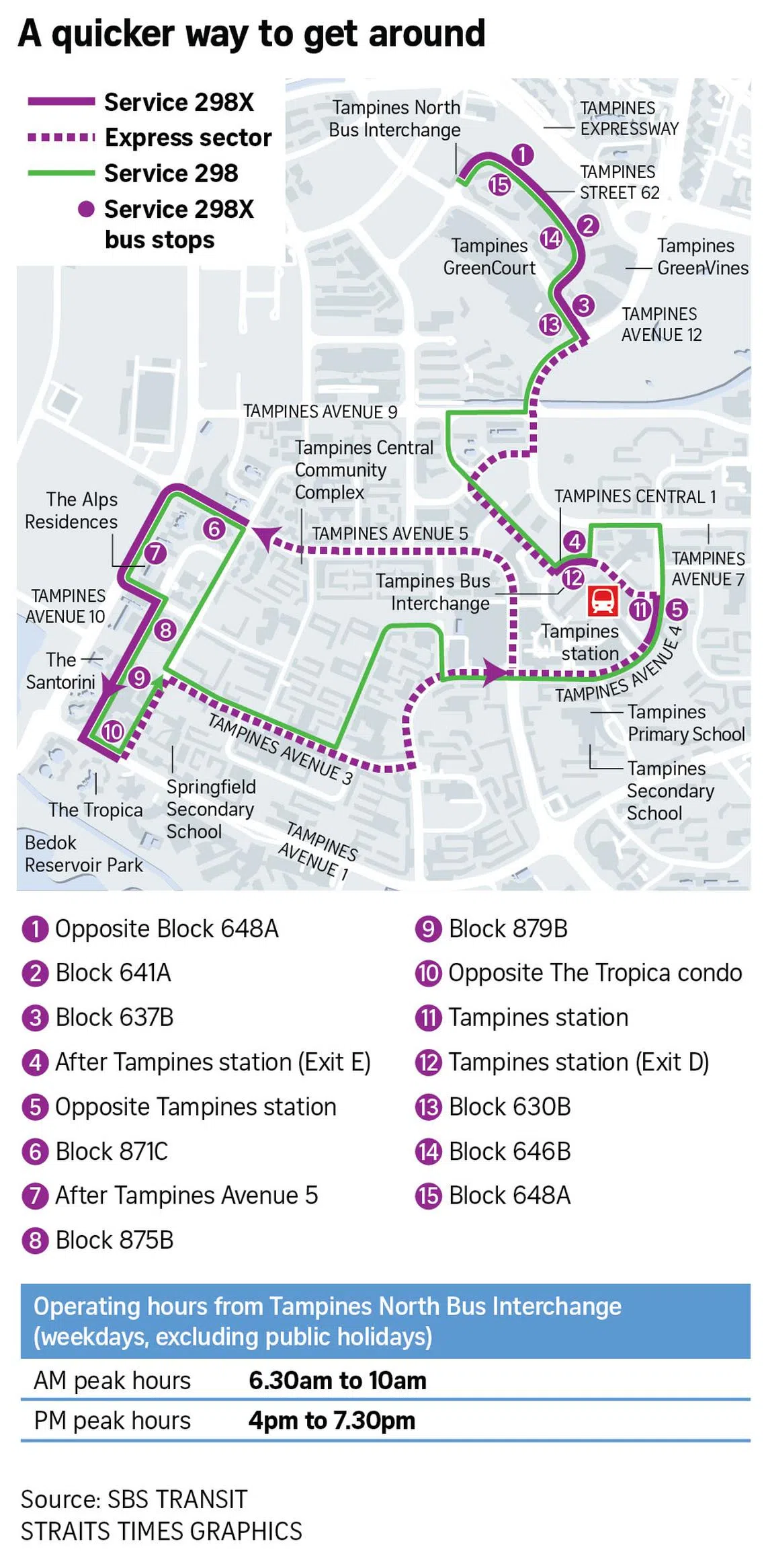 Service 298X will act as a supplementary service to feeder service 298, which serves residents of Tampines North, Tampines Central and Tampines West.