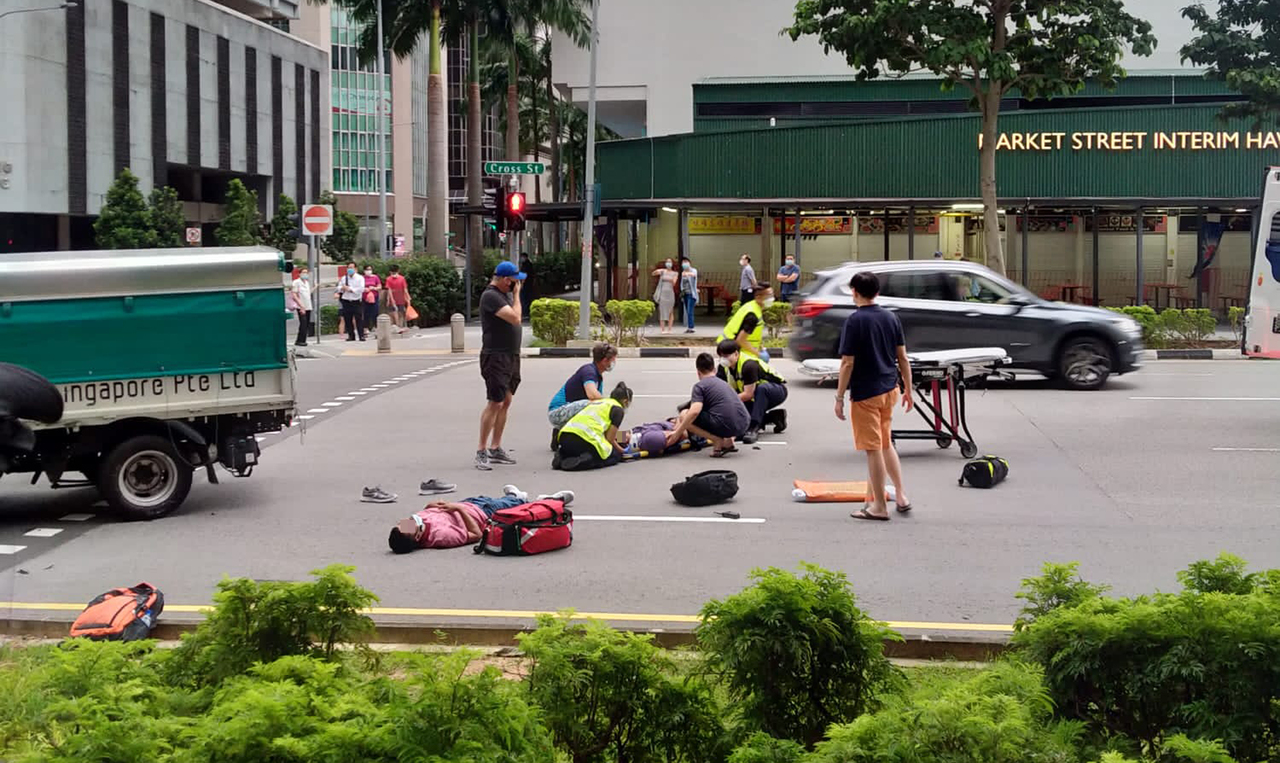 The police said they were alerted to the accident at the junction of Cross Street and Cecil Street, in the Shenton Way area, at 5.44pm on Sunday.