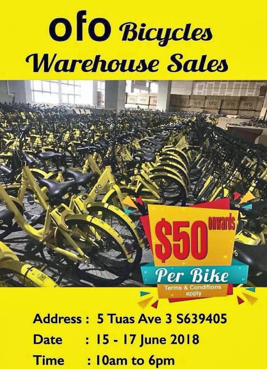 A flier advertising the sale of ofo's yellow two-wheelers, starting at $50, has been making its round on the Internet over the weekend.
