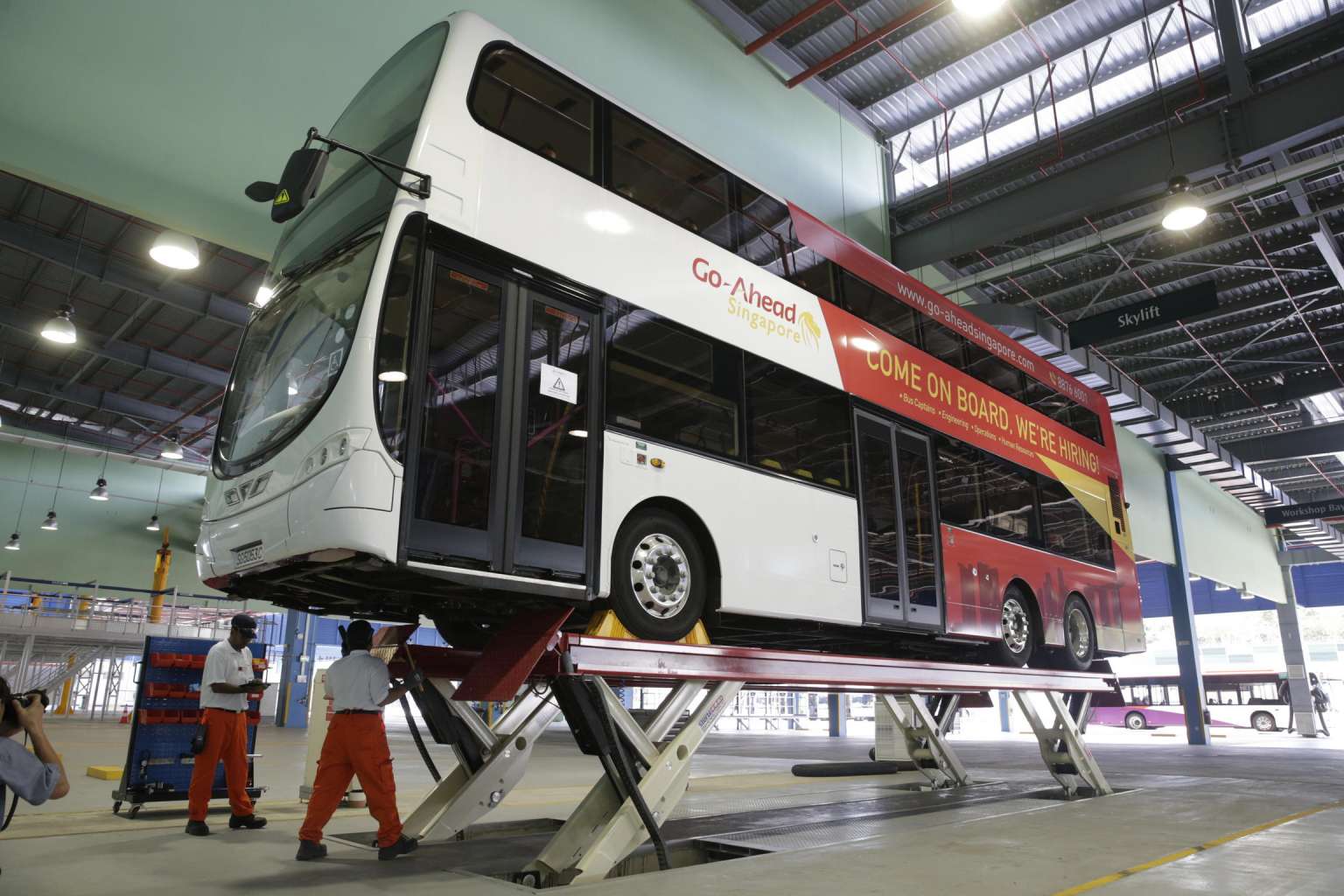 A Go-Ahead bus in the new Loyang bus depot's workshop, on June 16, 2016.