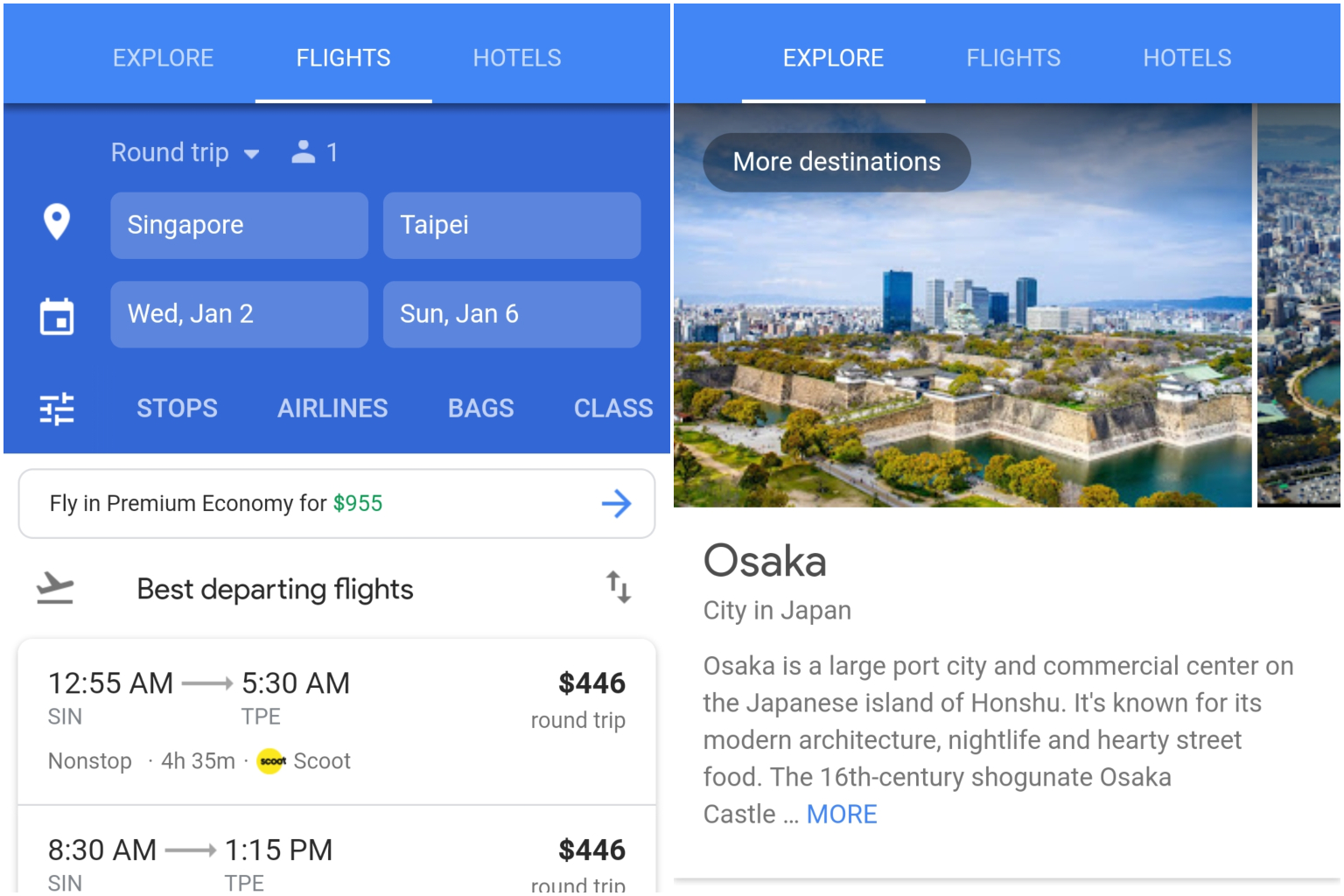 As for those who cannot decide where to go for their next getaway, they can use the "explore" function to view popular destinations and good deals by simply entering the desired time period and duration of one's trip.