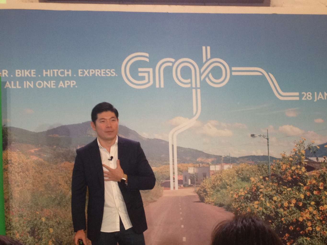Grab chief executive Anthony Tan speaking at a press conference on Jan 28.