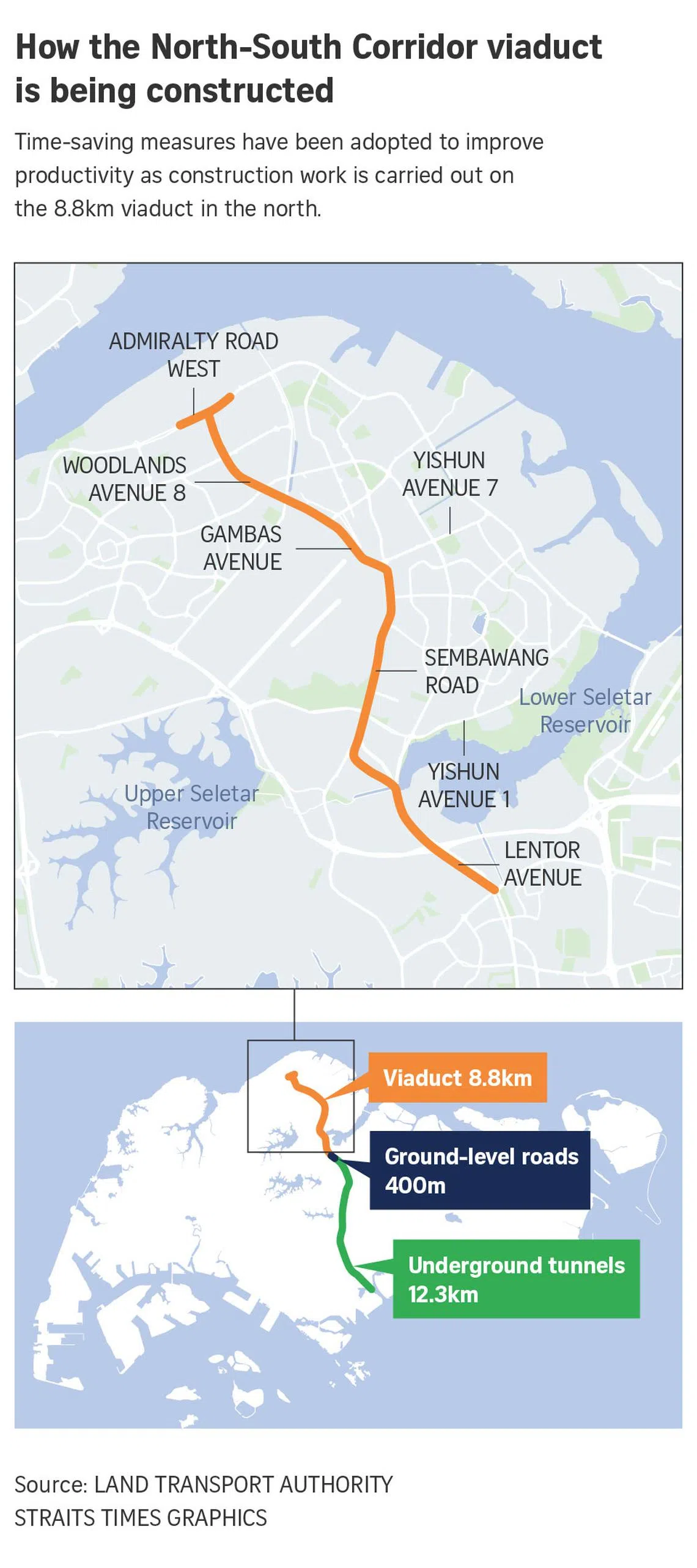 On the sustainability front, LTA is using low-carbon concrete, with a quarter made up of the waste by-product of steel mill manufacturing, to reduce the amount of carbon dioxide from the construction of the viaduct.