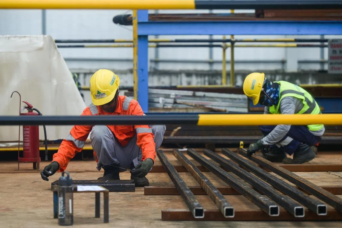 Workers at the precast yard in Admiralty Lane where the components for the NSC viaduct are being made on Nov 26.