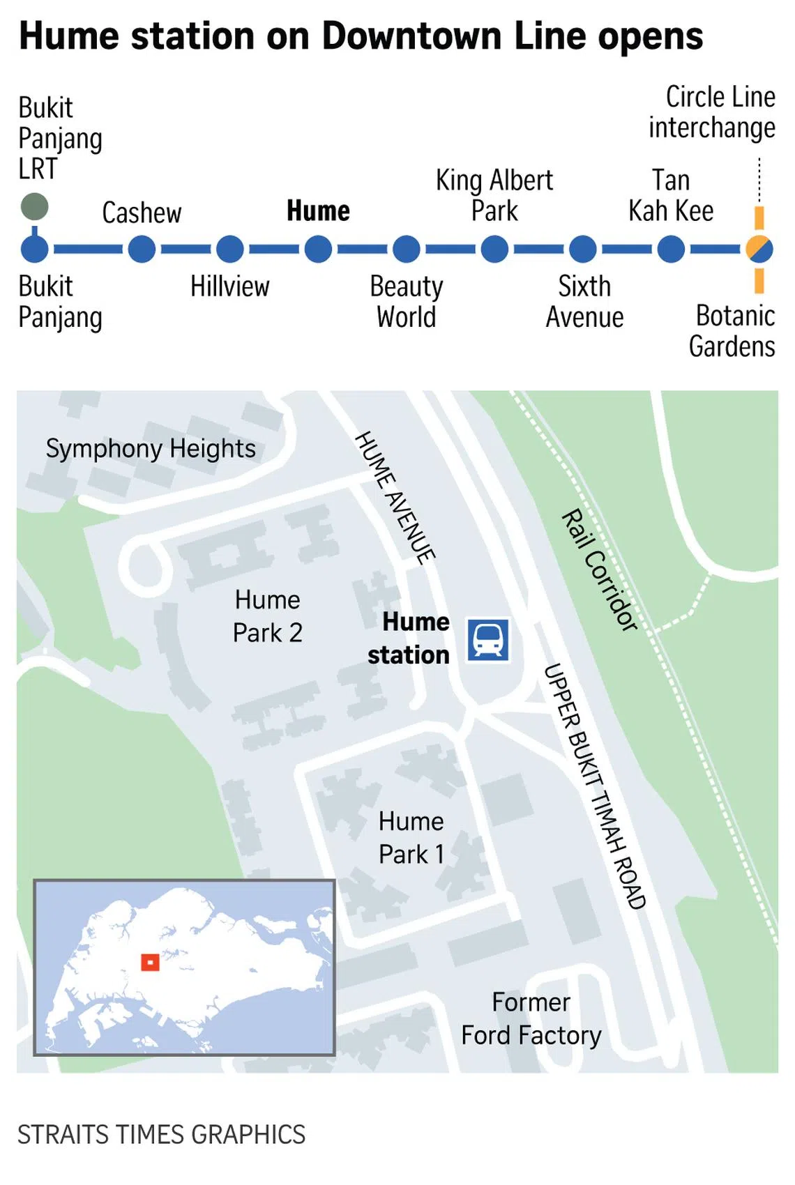 With Hume station, the Land Transport Authority said more than 220,000 households will be within a 10-minute walk from a station along the DTL.