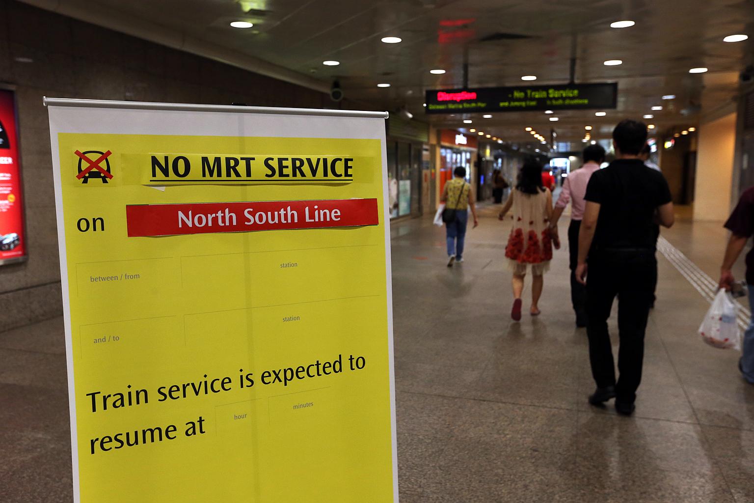 A sign at Lavender MRT at around 10:20pm on Tuesday informed commuters about the train disruption on the North-South line.