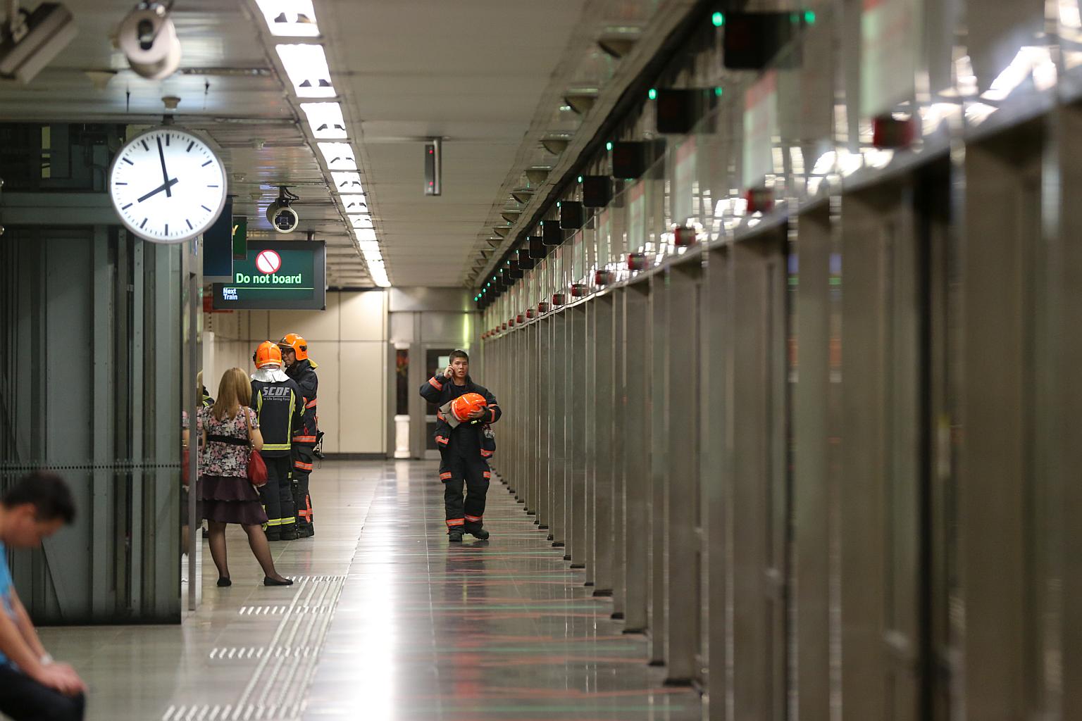 SCDF personnel were seen examining the train doors at Braddell MRT station.
